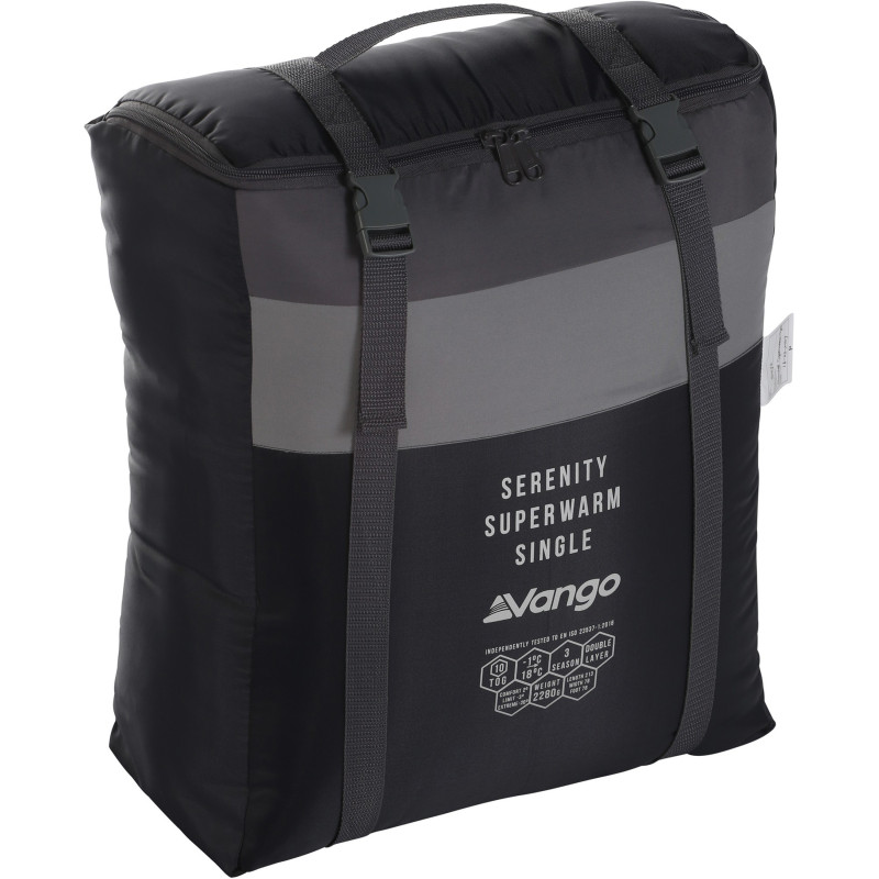 Vango Serenity Superwarm Single/-3°C Shadow Grey Left (SBQSERENIS32S7H) - cтильный спальный мешок с отличными характеристиками при невероятном комфорте. Данная модель прямоугольной формы с двухслойным утеплителем, а также мягкой на ощупь подкладкой, которая создает ощущение домашнего уюта во время отдыха на природе. Спальный мешок Vango Serenity Superwarm Single/-3°C Shadow Grey Left (SBQSERENIS32S7H) рассчитан на рост до 190 см, предназначен для кемпинга с начала весны до конца осени.