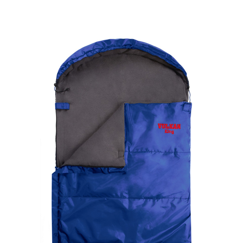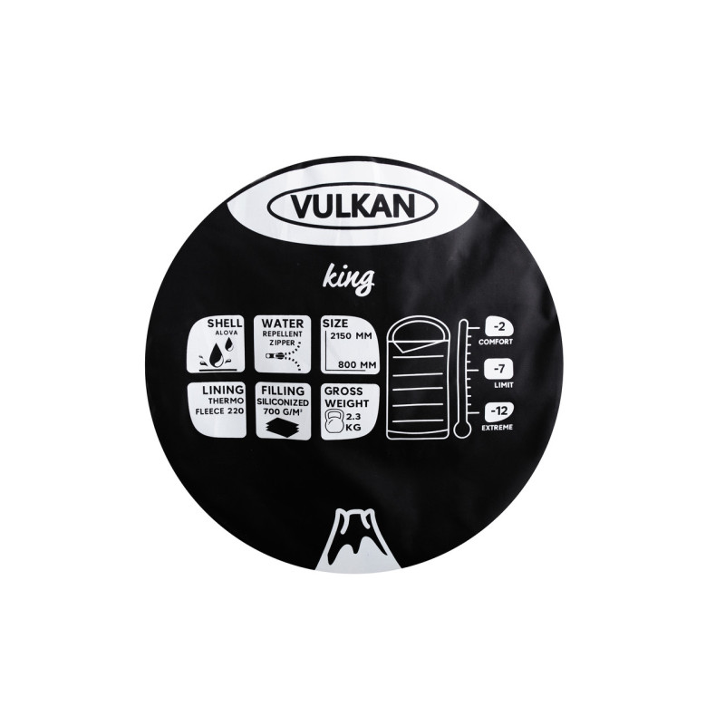 Спальный мешок Vulkan King- данная модель имеет самый большой размер и повышенные условия температурного режима. Идеальный подходит для поздних осенних выездов. В данной модели используется более плотная ткань, защищает от продувания и тем самым в большей мере сохраняет тепло внутри. Высокопрочный материал внешнего слоя обладает повышенными водонепроницаемыми, воздухопроницаемыми, ветрозащитными свойствами, а также устойчивостью к истиранию, разрыву и ультрафиолетовому излучению. Оснащен тепловым воротником, отделением для подушки, капюшон на утяжке. Внутренний наполнитель хорошо удерживает тепло и недеформируется при складывании, Внешний имеет водооталкивающие свойства. Имеет одинаковую ширину по всей прямоугольной форме. Молнии по бокам, для удобства и быстрого доступа.Благодаря наполнителю из силиконизированного синтепона и мягкой флисовой подкладке, Вы не замёрзите даже при минусовых температурах. Мягкая флисовая подкладка очень приятна на ощупь, будете чувствовать себя комфортно при любых условиях. Спальный мешок расстегивается с правой стороны, и при необходимости его можно использовать как подстилку на природе.Минимальная температура комфорта: -2 °C Минимальная температура в экстремальных условиях: -12 °С.Поверх бегунка дополнительная липучка для фиксации.Характеристики:- Материал: Oxford 600;- Флисовая подкладка;- Наполнитель: четырехслойный синтепон;- Размер в разложенном виде: 215х80 см;- Размер в сложенном виде: 28х28х38 см;- Вес 2,5 кг