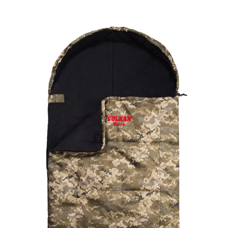 Спальный мешок Vulkan Micro- это идеальный вариант для комфортного и приятного отдыха. Данная модель сочитает в себе все самое необходимое теплый спальный мешок, который можно превратить в большое одеяло, а так же компактный размер в сложенном виде. Оснащен тепловым воротником, отделением для подушки, капюшон на утяжке . Внутренний наполнитель хорошо удерживает тепло и недеформируется при складывании, Внешний имеет водооталкивающие свойства. Имеет одинаковую ширину по всей прямоугольной форме.Полностью расстегнув молнию, спальник превращается в большое одеяло.Благодаря наполнителю из силиконизированного синтепона и мягкой флисовой подкладке, Вы не замёрзите даже при минусовых температурах. Мягкая флисовая подкладка очень приятна на ощупь, будете чувствовать себя комфортно при любых условиях. Спальный мешок расстегивается с правой стороны, и при необходимости его можно использовать как подстилку на природе.Минимальная температура комфорта: 5 °C Минимальная температура в экстремальных условиях: -5 °С.Поверх бегунка дополнительная липучка для фиксации.Характеристики:- Материал: Oxford 4000;- Флисовая подкладка;- Наполнитель: трехслойный синтепон;- Размер в разложенном виде: 215х65 см;- Размер одеяла: 215х140 см;- Размер в сложенном виде: 27х27х36 см;- Вес 2,1 кг
