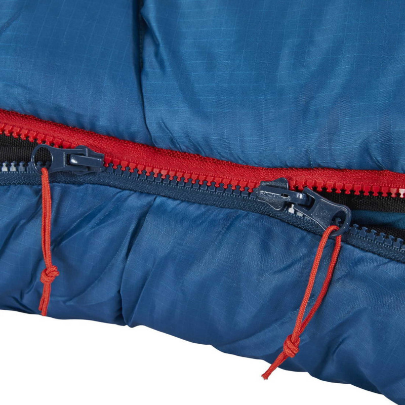 - Молния оснащена двумя замками, верхний из которых - двусторонний. Таким образом молния удобно расстегивается и застегивается как снаружи, так и изнутри, позволяя также открыть нижнюю часть спального мешка для проветривания.