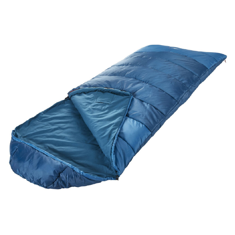 - Спальный мешок имеет молнию по всему периметру, благодаря чему в расстегнутом виде превращается в двуспальное одеяло шириной 170 см.