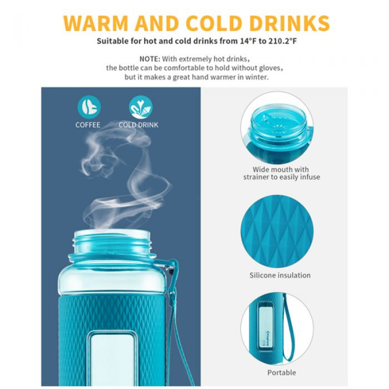 Спортивная бутылка сегодня считается обязательным аксессуаром для любого человека, который старается придерживаться здорового образа жизни. Она незаменима при длительных прогулках и поездках, в путешествиях, на пробежках, в тренажерном зале. Специальная бутылка для спорта позволит в любой момент восполнить водный баланс, а также станет для вас просто красивым аксессуаром, который приятно брать с собой. Фитнес бутылка для воды от компании KingCamp — отличная возможность пить на ходу, держа ее в одной руке и открывая одним движением пальца. При этом, можно не бояться за сохранность своих вещей и носить ее в сумке.Объем: 1 литрМатериал: TritanРазмер: 26.5 х 7.5 смВес: 165гЦвет: голубой