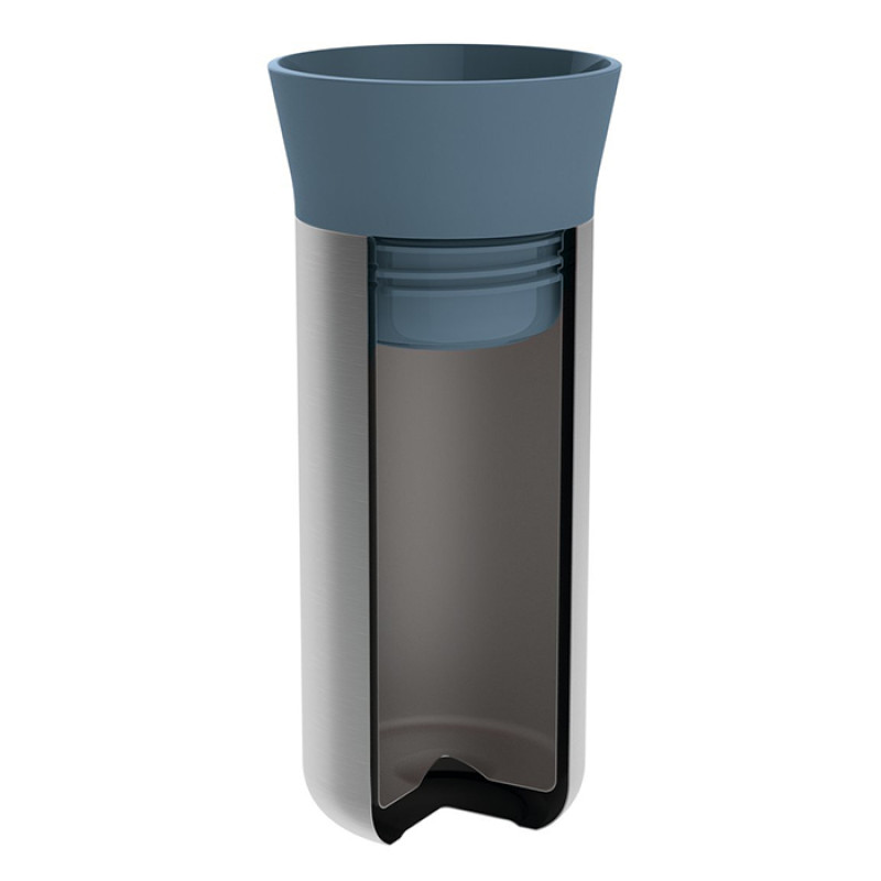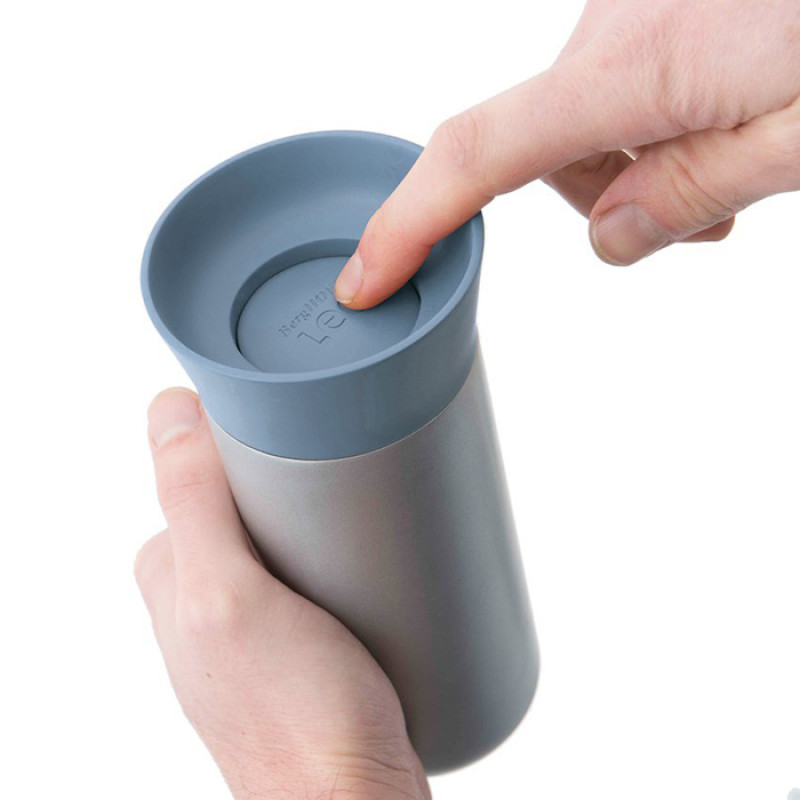 Термокружка виготовлена з нержавіючої сталі, має ергономічний дизайн. Кришка з силіконовим ущільнювачем має високі бортики, кнопковий механізм для зручного відкривання. Рекомендується мити вручну.