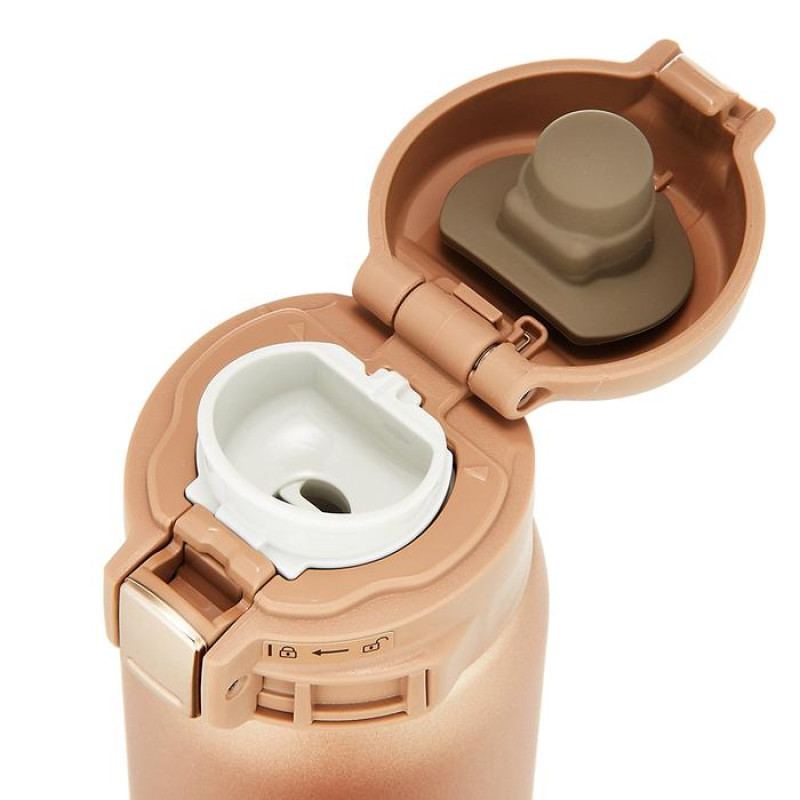 Дизайн этого термоса продуман таким образом, чтобы было удобно пить прямо из горлышка, то есть можно вполне обойтись без кружки, что очень удобно в путешествиях или во время длительных прогулок. Верхняя часть крышки скручивается, что облегчает процесс мытья такого термоса. Идеально ровная тефлоновая поверхность внутренней части колбы - еще один плюс мини-термосов ZOJIRUSHI.