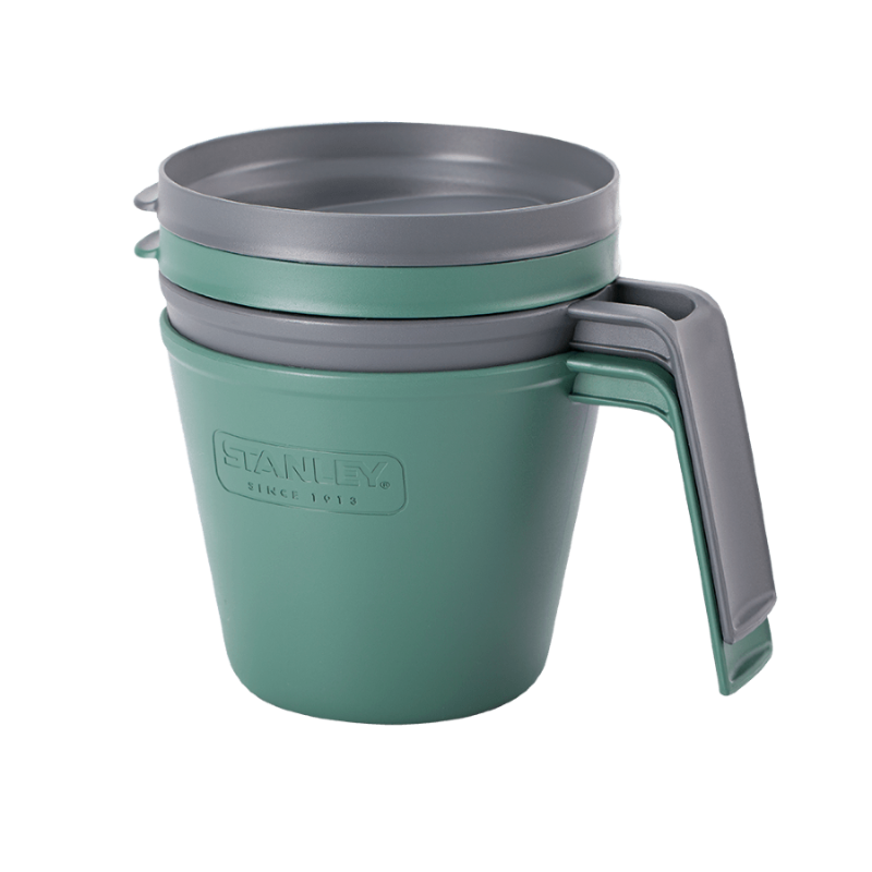 Набір з 4-х складних предметів (2 чашки+2 кришки з отворами для пиття) для економії простору при упаковці або зберіганні. Чашка має розмітку, можна використовувати як мірний стакан. Ecycle - запатентована Stanley PMI система використання переробленого пластику.