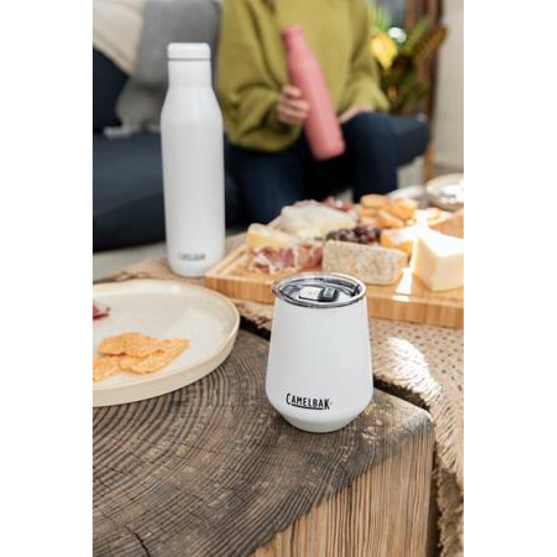 CamelBak Wine Tumbler Insulated Stainless Steel — новий стакан об'єднання об'ємом 0,35 л з подвійними стінками та вакуумною ізоляцією. Міцне порошкове покриття, нержавіюча сталь та трирежимна кришка. Окрім того, завдяки нековзній силіконовій основі, стакан надійно стоїть на поверхні. Можна мити в посудомийній машині та не містить BPA, BPS та BPF.