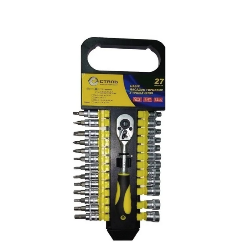 (70089) Набір головок та насадок торц. з тріскачкою 1/4", 27 од. СТАЛЬ