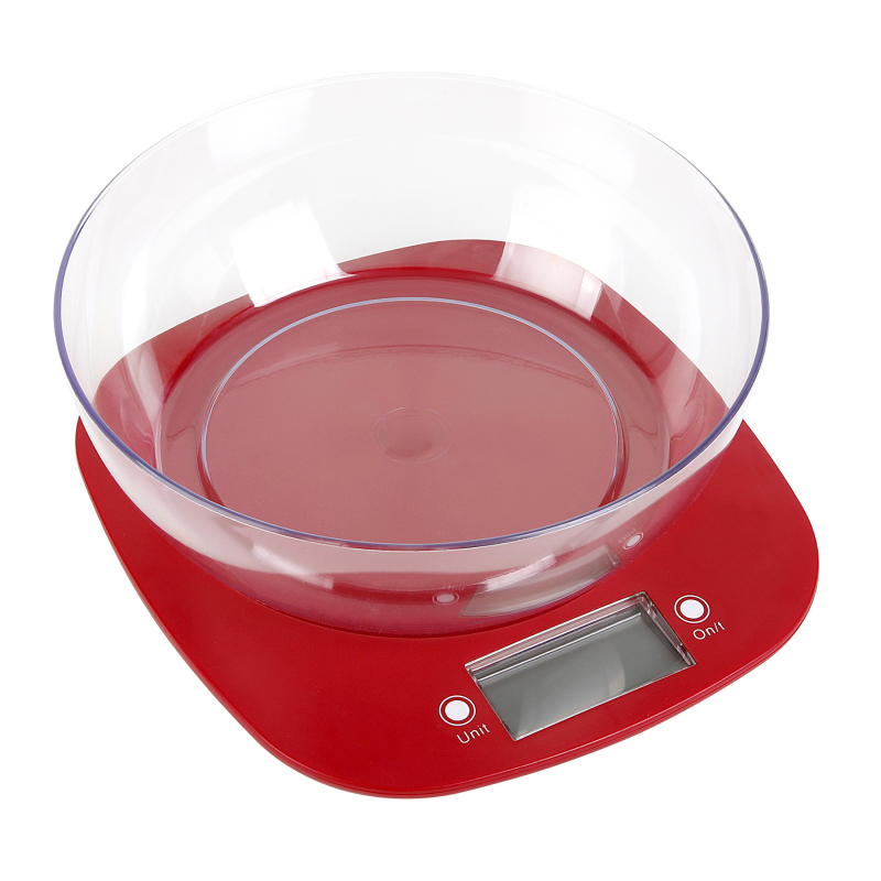 ВЕСЫ (ДЛЯ КУХНИ) - KES-1PR (красные, с чашей, макс-5кг) NEW (GRUNHELM)