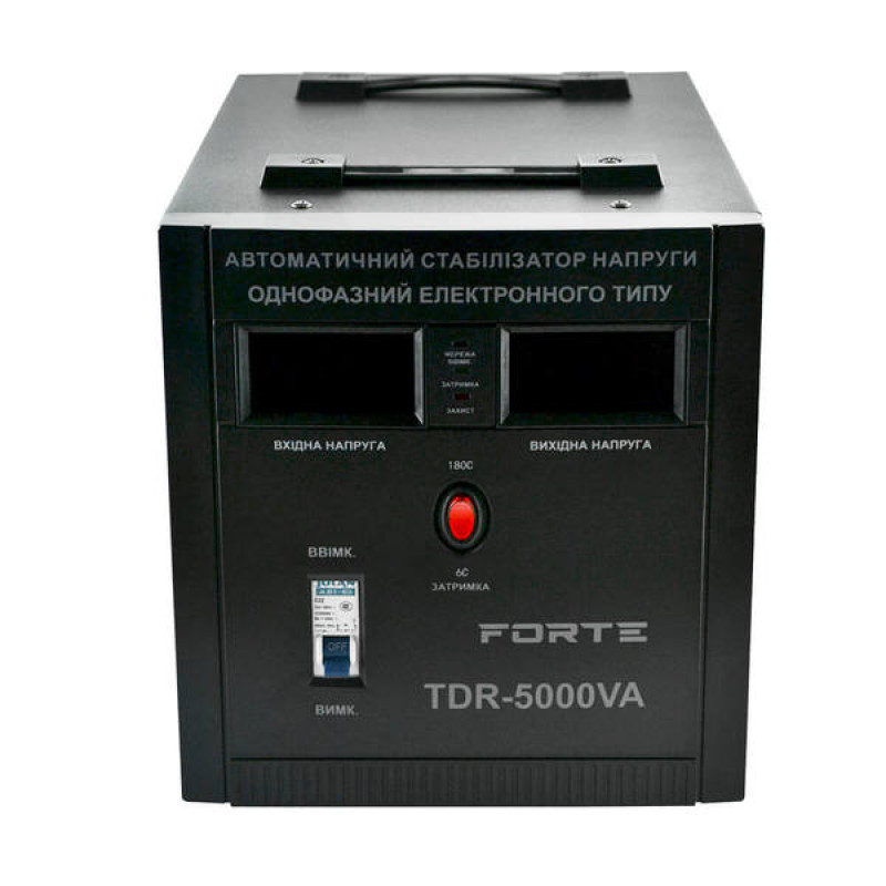 Forte TDR-500VA Стабилизатор напряжения Стабилизатор напряжения FORTE TDR-500VA – долговечное, надежное и практичное устройство, которое позволяет обеспечить бесперебойное электроснабжение бытовых приборов в условиях заниженного или завышенного напряжения сети, а также при значительных скачках электрического тока. Эргономичный дизайн, компактные габариты и небольшой вес делают данную модификацию эффективным и полезным помощником в доме, квартире или на загородном участке.