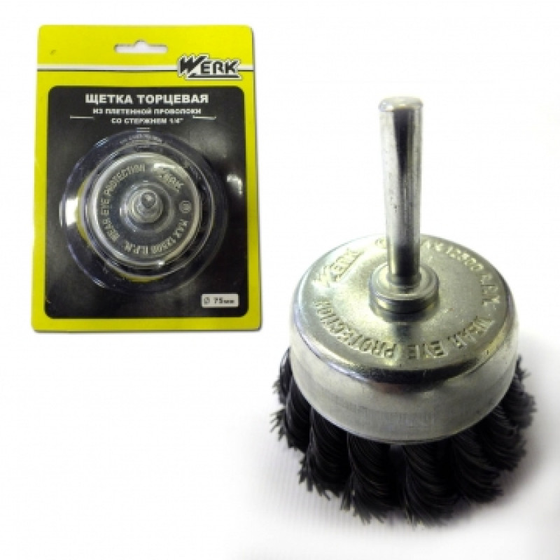 Щетка торцевая плетеная со стержнем - 75мм (WERK)