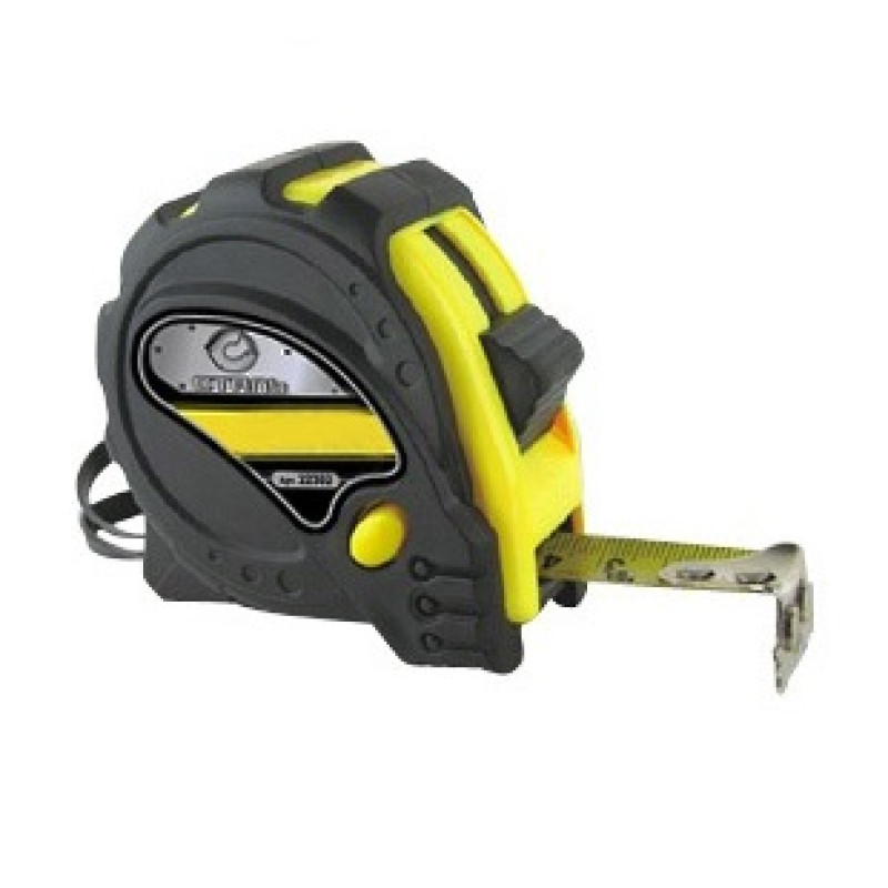 Сталь 22932 Рулетка измерительная 5м х 25мм Небольшая измерительная рулетка длиной 3 м, с тремя кнопками фиксатора. Изделие получило прорезиненный корпус для защиты от падения и уменьшения скольжения. Для удобства переноски предусмотрен специальный ремешок. Удобная шкала обеспечивает легкое считывание замеров.