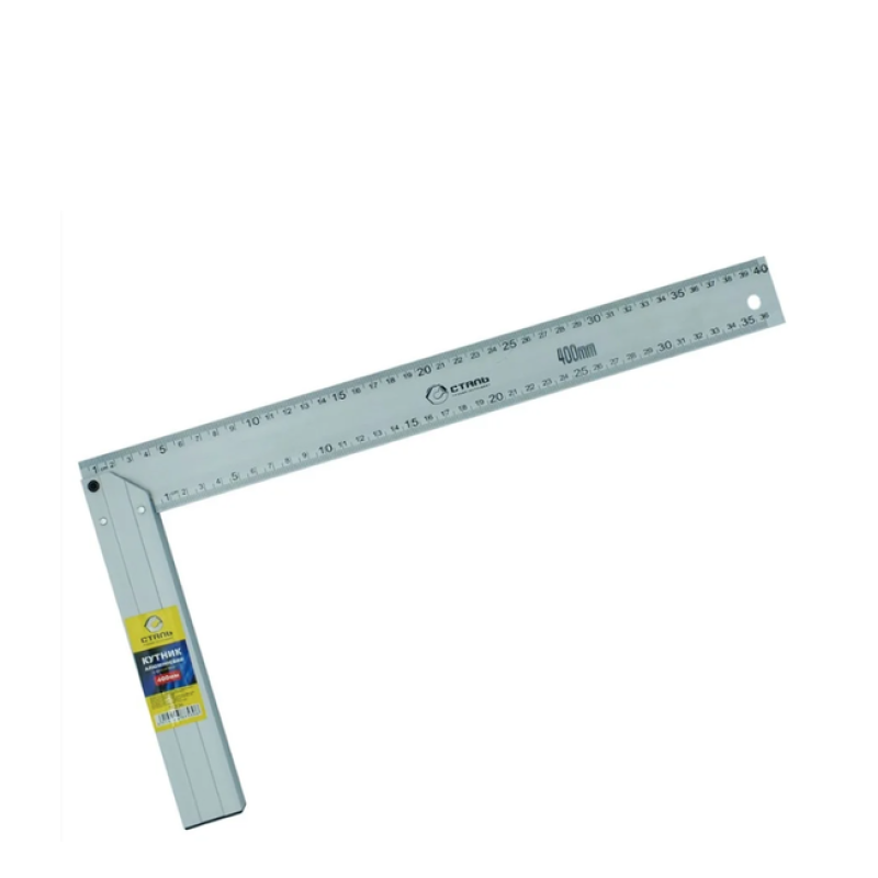 Сталь 24236 Угольник алюминиевый 400 мм Угольник алюминиевый 400 мм Сталь - необходим для точного отмеривания величин и расстояний, особенно когда требуется соблюдение прямого угла в 90 °. Использование уголка значительно повышает точность разметки рабочей поверхности, подлежащей обработке. Качество результата увеличивается, как и скорость работы. Алюминиевый измерительный профиль имеет желоб, который придает особую прочность конструкции.