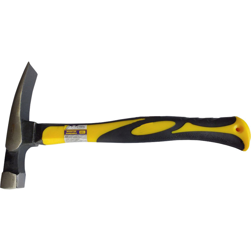 Сталь 44041 Молоток каменщика 500 г Молоток каменщика изготовлен из высококачественной инструментальной стали, имеет квадратный боек и плоский заостренный носок. Применяется для работы с камнем и кирпичем. Предназначен для механической обработки, скалывания и рубки на куски.