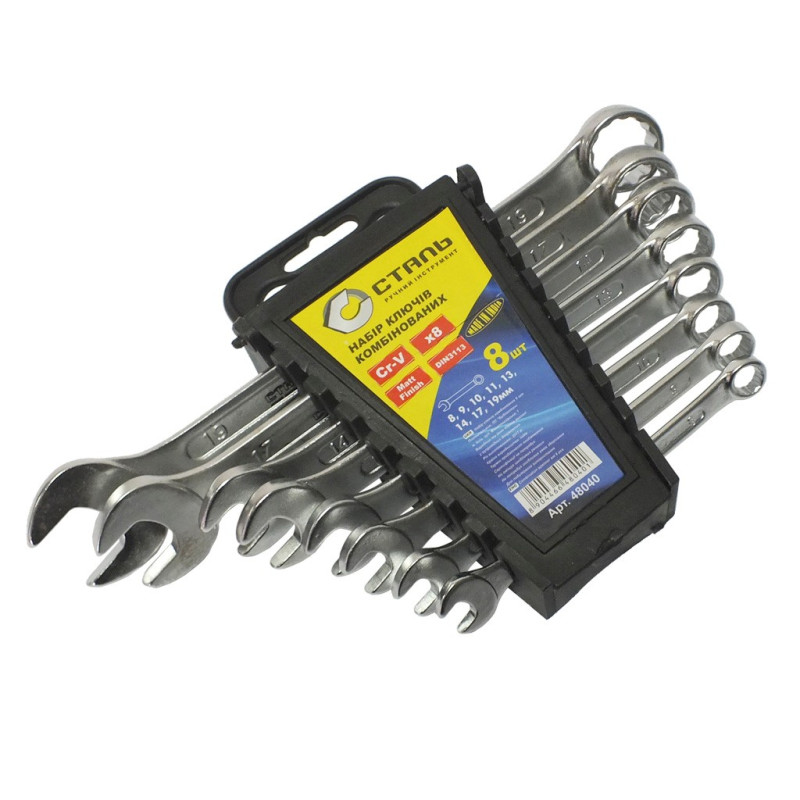 (48040)Набор ключей комбинированных -CRV 8 шт. мат, пласт упак (СТАЛЬ)