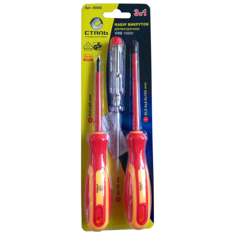 (49066) Набір викруток діелектричних, 1000V, VDE, 3 шт.Сталь