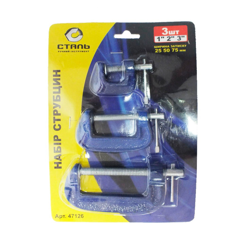 (47126) Набір струбцин столярних тип G (25мм 50мм 75мм), 3 шт. (СТАЛЬ)