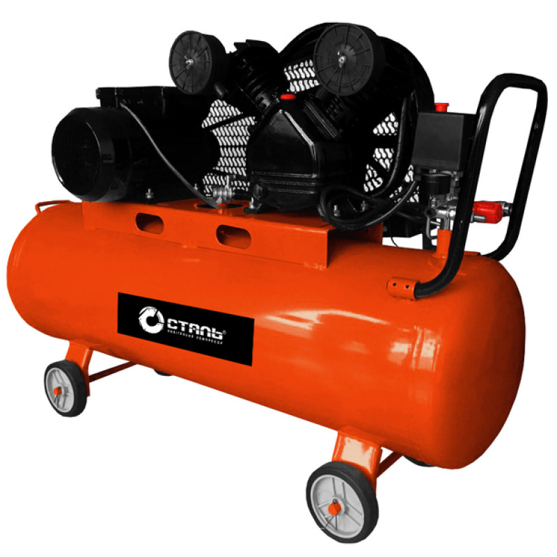 Сталь КСР-04/100 Компрессор Сталь КСР-04/100 - 100-литровый поршневой компрессор, который благодаря своим функциональным возможностям и конструктивным особенностям, может смело использоваться в строительстве, ремонтных мастерских и станциях СТО. С его помощью Вы можете подключать пневмоинструменты, осуществлять покраску, пескоструйную зачистку материала, продувку, лакировку изделий и выполнять другие работы, требующие подачу воздуха под высоким давлением.