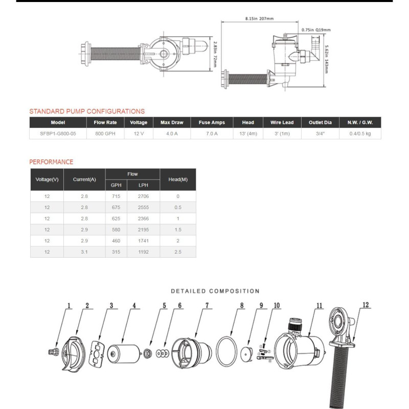 Аэратор горизонтальный 800GPHSFBP1-G800-05 SEAFLO