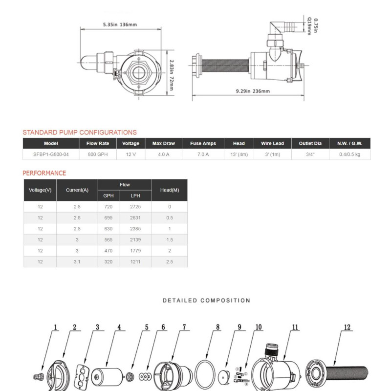 Аэратор вертикальный 800GPHSFBP1-G800-04 SEAFLO