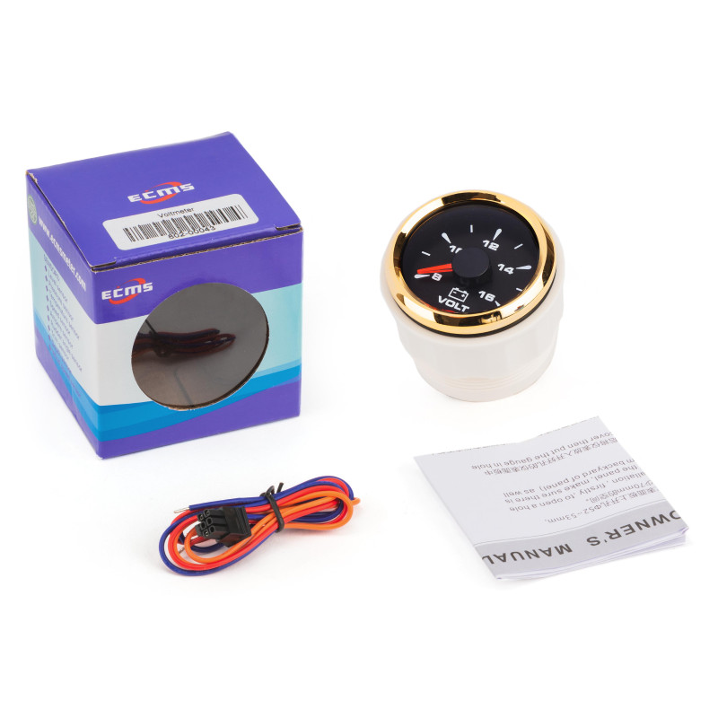 Вольтметр ECMS HMV2-BG-8-16 диаметр 52мм, рамка — золото, дисплей — черный