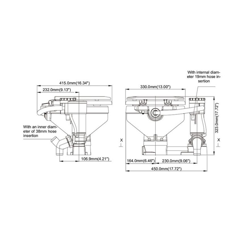 Электрический конверсионный туалет SEAFLO компактный размер 12В SFMTE1-02