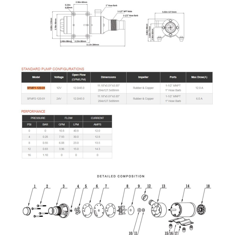 Мацератор SFMP1-120-01 SEAFLO 18,9 литра за минуту, давление 70 PSi