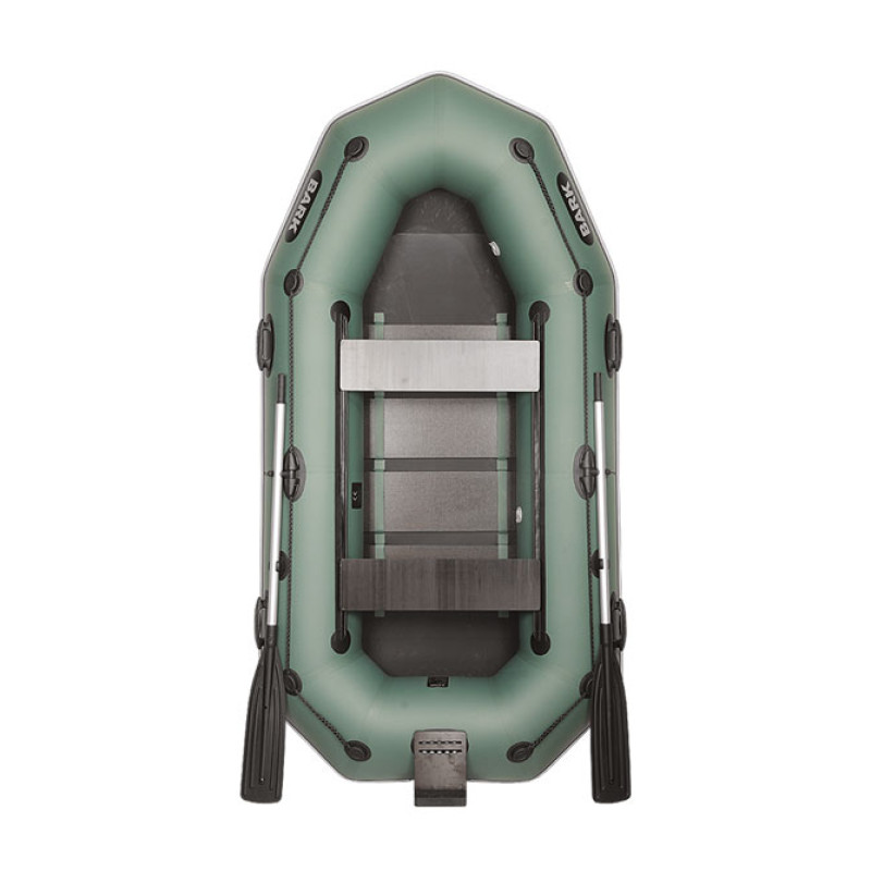 Найлегша 2-місцева гребний човен BARK. Збільшений (порівняно зі стандартом) діаметр балонів гарантує ще більшу плавучість, остійність. Слань-книжка дозволяє досить впевнено встати в човні. Цілком комфортабельна для риболовлі удвох навіть в ситуації, коли обидві людини «працюють» одночасно, а також для полювання, водних прогулянок. Підходить для туристського сплаву по річках 1 і 2 категорії складності (з відносно невисокими порогами, кам'янистими шивера, зі стоячими хвилями). Хороша також для дайверів.У комплект поставки входить: