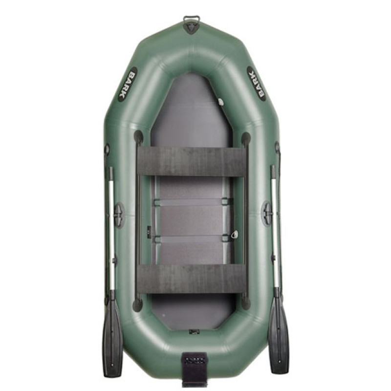 Навісний транец ускладнює комплект цього човна лише на 2 кг порівняно з човном B-230C. Зате використання мотора до 2,2л.с. набагато полегшує подолання досить великих відстаней. Човен залишається цілком комфортабельної для двох навіть при розміщенні в ній бака з паливом або акумулятора. Ця гребний човен хороша і для риболовлі (в тому числі методом троллінгу), і для полювання, і для довгих водних прогулянок, а також для дайвінгу. Без мотора хороша також для туристського сплаву по річках 1 і 2 категорії складності (з відносно невисокими порогами, кам'янистими шивера, зі стоячими хвилями).У комплект поставки входить: