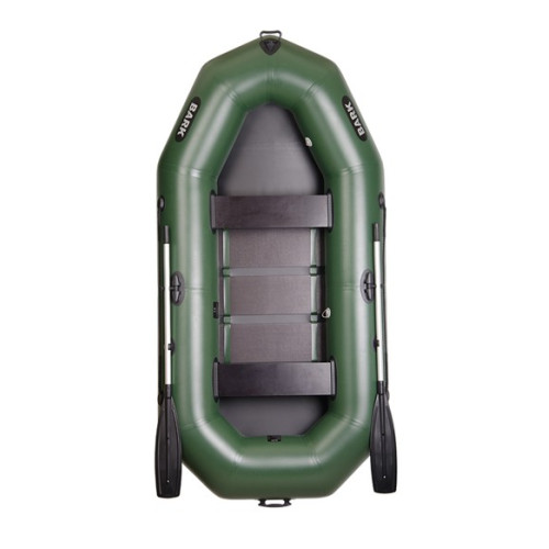 Ця гребний човен, поєднуючи переваги моделей B-300N книжка і B-300P книжка, наближається до моторних човнів зі стаціонарним транцем. Ця човен з мотором до 3,3л.с. показує високу керованість і хорошу швидкість порівняно з іншими човнами приблизно такого самого розміру з навісним транцем. Привальний брус з бризгоотбойніком захищає борти від зіткнення і зайвого тертя (про опори причалу, очерет і т.п.), а пасажирів і кокпіт - від надмірного забризкування. Човен дуже зручна для риболовлі удвох (але досить зручна і для трьох рибалок). Хороша для сімейних водних прогулянок з досить довгим маршрутом.У комплект поставки входить: