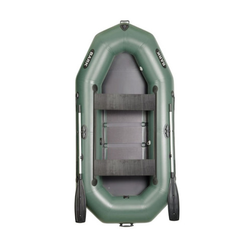 Найлегша і компактна моторна надувний човен BARK зі стаціонарним транцем. Притому з мотором до 3,3л.с. показує відмінну керованість і хорошу швидкість порівняно з іншими човнами приблизно такого самого розміру. Пересувне заднє сидіння полегшує оптимальний розподіл ваги, управління мотором. 5 сланей дають хорошу жорсткість днища на ходу і комфортабельність. У човні можна впевнено встати. Як все човни BARK, ця модель оснащена привальним брусом з бризгоотбойніком. Тому борту захищені від зіткнення і зайвого тертя (про опори причалу, очерет і т.п.), а пасажири і кокпіт - від надмірного забризкування. Захисні молдинги на днище бережуть його від зайвого тертя при витягуванні на берег, перевезення на причепі. На цей човен можна встановити тент. Ця човен хороша для риболовлі будь-яким способом, для водних прогулянок. Зручна і для полювання.У комплект поставки входить: