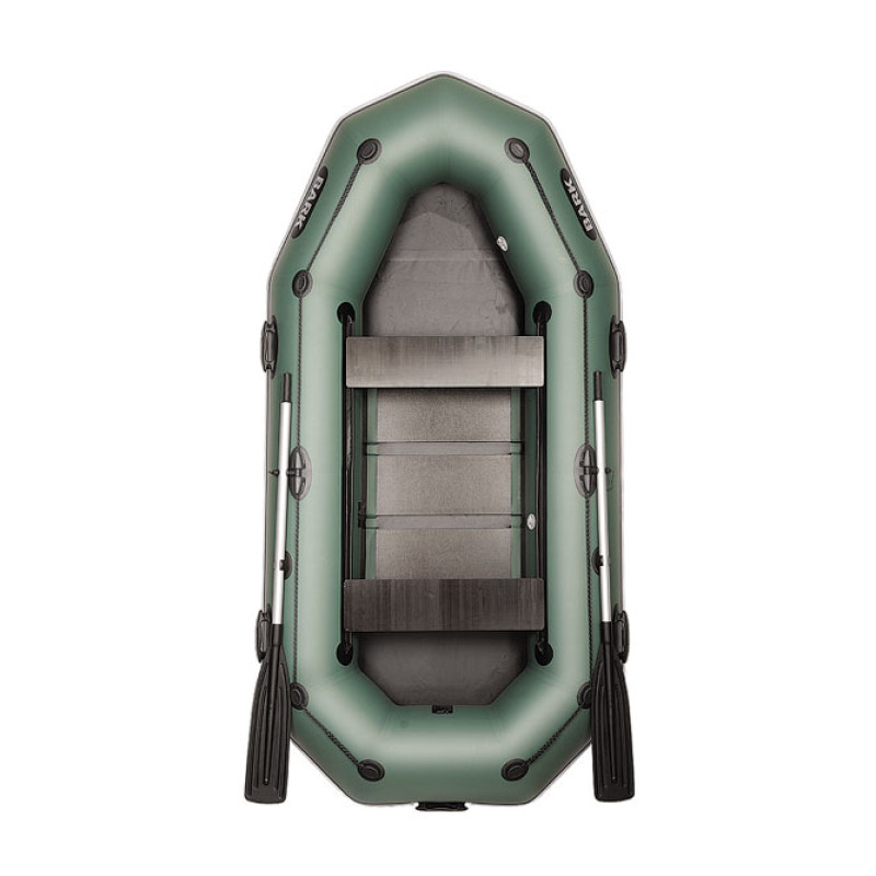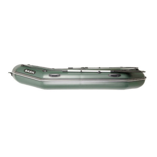 З мотором до 5л.с. показує відмінну керованість і хорошу швидкість порівняно з іншими човнами приблизно такого самого розміру. Пересувне заднє сидіння полегшує оптимальний розподіл ваги, управління мотором. 6 сланей дають необхідну жорсткість днища на ходу і високу комфортабельність. Як все човни BARK, ця модель оснащена привальним брусом з бризгоотбойніком. Тому борту захищені від зіткнення і зайвого тертя (про опори причалу, очерет і т.п.), а пасажири і кокпіт - від надмірного забризкування. Захисні молдинги на днище бережуть його від зайвого тертя при витягуванні на берег, перевезення на причепі. На цей човен можна встановити тент або човнову намет. Ця човен дуже зручна для риболовлі будь-яким способом, для водних прогулянок. Зручна і для полювання.У комплект поставки входить: