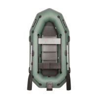 З мотором до 10к показує відмінну керованість і більш високу швидкість порівняно з іншими човнами приблизно такого самого розміру. 6 сланей збільшують комфортабельність човни, дають необхідну жорсткість днища на ходу під мотором. Пересувне заднє сидіння полегшує оптимальний розподіл ваги, управління мотором. Привальний брус з бризгоотбойніком захищає борти від зіткнення і зайвого тертя (про опори причалу, очерет і т.п.), а пасажирів і кокпіт - від надмірного забризкування. Захисні молдинги на днище бережуть його від зайвого тертя при витягуванні на берег, перевезення на причепі. На цей човен можна встановити тент або човнову намет. Човен особливо зручна для риболовлі будь-яким методом удвох (але досить зручна і для трьох рибалок). Також для сімейних водних прогулянок з досить довгим маршрутом.У комплект поставки входить: