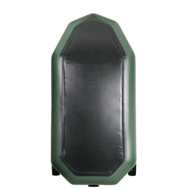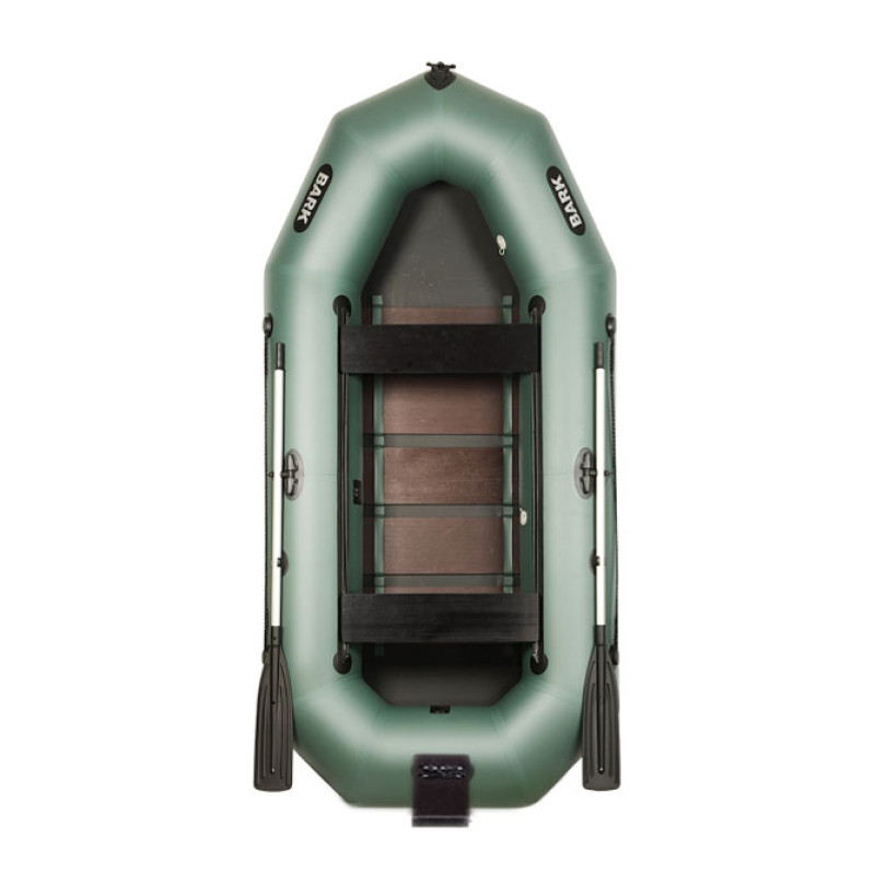 Досить легка порівняно з більшістю 4-місних моторних надувних човнів, має відмінну надійність і комфортабельність. З мотором до 8л.с. показує відмінну керованість і хорошу швидкість. 7 сланей збільшують комфортабельність човни, дають необхідну жорсткість днища на ходу під мотором. Пересувне заднє сидіння полегшує оптимальний розподіл ваги, управління мотором. Привальний брус з бризгоотбойніком захищає борти від зіткнення і зайвого тертя (про опори причалу, очерет і т.п.), а пасажирів і кокпіт - від надмірного забризкування. Захисні молдинги на днище бережуть його від зайвого тертя при витягуванні на берег, перевезення на причепі. На цей човен можна встановити тент або човнову намет. Човен особливо комфортна для риболовлі будь-яким методом удвох (але досить зручна навіть для чотирьох рибалок); для сімейних водних прогулянок з довгим маршрутом.У комплект поставки входить: