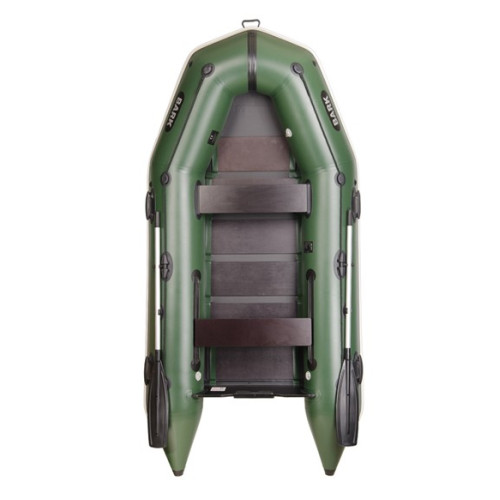 Ця човен з надувним кілем і жорстким збірним настилом легше більшості човнів порівнянних параметрів. Притому, при чудовій надійності і комфортабельності, показує з мотором до 15л.с. відмінну керованість і хорошу швидкість. Човен добре виходить на глиссирование. Привальний брус з бризгоотбойніком захищає борти від зіткнення і зайвого тертя (про опори причалу, очерет і т.п.), а пасажирів і кокпіт - від надмірного забризкування. Захисні молдинги на днище бережуть його від зайвого тертя при витягуванні на берег, перевезення на причепі. На цей човен можна встановити тент або човнову намет. Човен виключно комфортна для риболовлі будь-яким методом удвох (але досить зручна навіть для чотирьох рибалок); для сімейних водних прогулянок з довгим маршрутом. Хороша для любителів швидкої їзди.У комплект поставки входить: 1. Механічний насос 2.Весла 3.Упаковочная сумка 4. Рем.комплект 5. Керівництво по експлуатації з гарантійним талоном 6. Сертифікат малого судна.