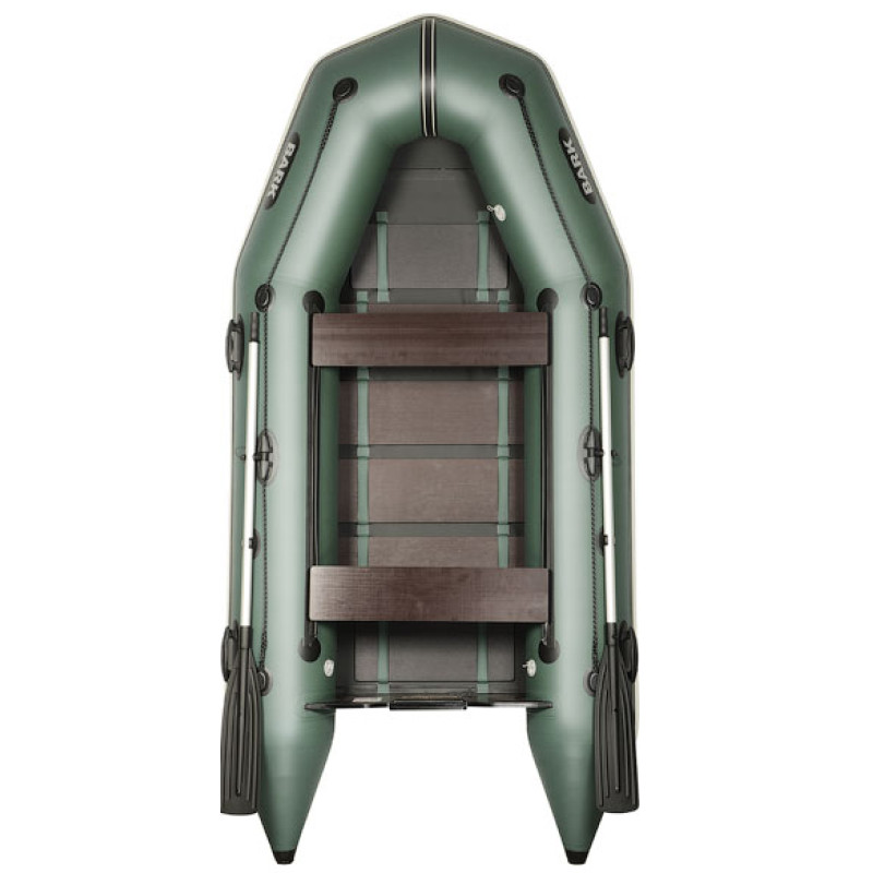 За швидкісними можливостями надувні човни BARK цієї серії близькі до спортивних гоночним човнам. З мотором до 15л.с. цей човен з надувним кілем і жорстким збірним настилом показує відмінну керованість і більш високу швидкість порівняно з іншими човнами порівнянних параметрів. Човен легко вивести на глиссирование. Притому у човни досить просторий кокпіт. Привальний брус з бризгоотбойніком захищає борти від зіткнення і зайвого тертя (про опори причалу, очерет і т.п.), а пасажирів і кокпіт - від надмірного забризкування. Захисні молдинги на днище бережуть його від зайвого тертя при витягуванні на берег, перевезення на причепі. На цей човен можна встановити тент або човнову намет. Човен особливо комфортна для риболовлі будь-яким методом удвох (але досить зручна і для чотирьох рибалок); для сімейних водних прогулянок з довгим маршрутом. Вельми порадує любителів швидкої їзди.У комплект поставки входить: