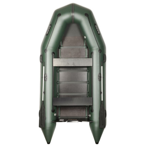 Ця моторний човен з надувним кілем і жорстким збірним настилом при великій довжині завдяки оптимально вивіреним пропорціям має високу керованість, маневреність. Показує хорошу швидкість з мотором до 30л.с. Привальний брус з бризгоотбойніком захищає борти від зіткнення і зайвого тертя (про опори причалу, очерет і т.п.), а пасажирів і кокпіт - від надмірного забризкування. Захисні молдинги на днище бережуть його від зайвого тертя при витягуванні на берег, перевезення на причепі. Дуже просторий кокпіт і велика місткість дозволяє декільком рибалкам влаштувати міні-чемпіонат в межах одного човна. Причому кожному вистачить простору для дій. Хороша човен для швидкісних водних прогулянок навіть увосьмеро. На цей човен можна встановити тент.У комплект поставки входить: