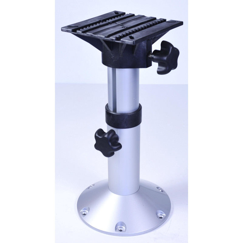 Стойка под кресло комбинированная, алюминий + пластик.Характеристики:Высота (мм): 340 — 510Диаметр нижней трубы (мм): 73Диаметр верхней трубы (мм): 65Диаметр основания стойки (мм): 225Высота основания стойки (мм): 50Монтажные отверстия пластины для сиденья (мм): 150х150 > 120х120Основание для крепления сиденья: пластик.Основание крепления стойки: алюминий.