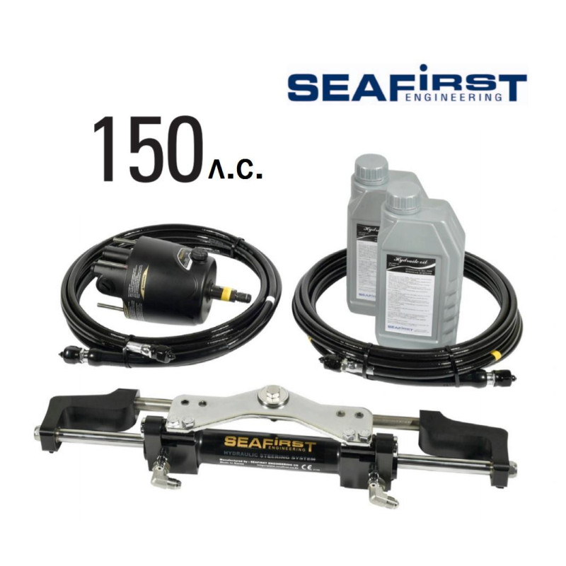 Гидравлическая система Seafirst до 150 л.с. Корея— редуктор №18, на 5,6 оборота от крайней точки до крайней— гироцилиндр переднего крепления— 2 литра трансмиссионного масла— 2 шланга по 7 метров— набор крепежа для редуктора