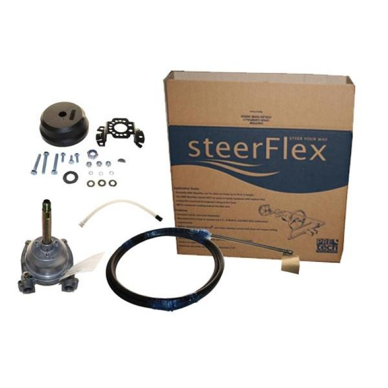 В набор входит рулевой редуктор 3000, оснащенный внутри планетарной передачей, шестерни которой изготовлены из стального сплава и стальной рулевой трос типа М66.В комплект входят все необходимые аксессуары для крепления редуктора на пост управления, а также верхняя декоративная накладка черного цвета.Изготовитель — компания PRETECH Южная Корея.