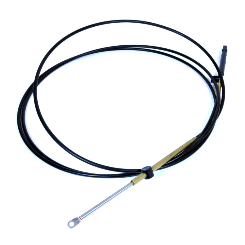 Трос газа или реверса фирмы TELEFLEX (США)Трос изготовлен из нержавеющей стали и пластиковой оплетки. Используется для дистанционного управления лодочными моторами как стационарными так и подвесными. Применяется для подвесных двигателей Mercury и стационарных Mercruiser.В этих тросах используется оплетка с нержавеющей стали наполненная смазывающей добавкой.Сердечники также выполнены из нержавеющей стали с латунными концевиками. Минимальный радиус изгиба 15см.