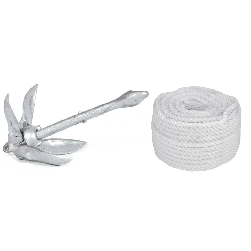 Характеристки:Вес (кг): 1.4ОцинкованЦвет: СеребристыйЭксплуатация: соленая и пресная водаДиаметр веревки (мм): 6Цвет веревки: белыйМетраж веревки (м): 30