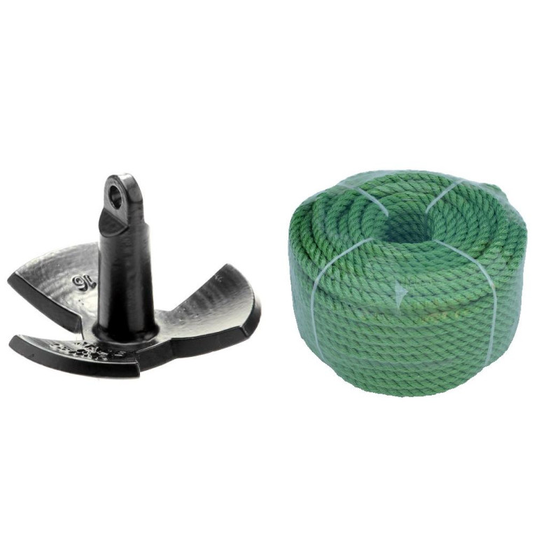 Характеристики:Вес (кг): 9С полимерным покрытиемИзготовлен из высокопрочной сталиЭксплуатация: соленая, пресная водаЦвет якоря: черныйМетраж веревки (м): 30Цвет веревки: синий или зеленыйДиаметр веревки (мм): 8Подходит для лодок не больше (м) 5,5 (18 футов).