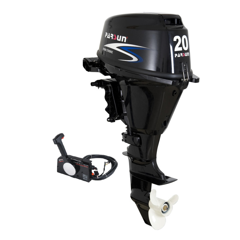 Мотор Parsun F20A FWS это версия с дистанционным управлением нового мотора линейки Parsun. Это полная копия довольного нового в прооизводственной линейке Yamaha мотора F20 BMHS, который явлеется одним из самых популярных моторов для отечественных алюминиевых лодок. Несмотря на то, что мотор производится почти год, в Украину он был поставлен только недавно. Задержка связана с желанием дождаться исправления всех ошибок в производстве. Гарантия 3 года. Мотор поставляется с электростартером, д/у коробкой управления, бак 24л. и тросами газ/ревес МодельParsun F20A BMSТип моторачетырехтактныйМощность20 л.с.Вес52,7 кгМаксимальное число об./мин5000-6000Тип топливной системыКарбюраторВысота транца381 ммРабочий объем362 см3Система управленияд/у управлениеЗапускэлектрозапускРекомендуемый бензин92Внешний бак ОхлаждениеводяноеПередаточное отношение2.08 : 1ПередачиF-вперед — N-нейтраль — R-назадДиаметр Х ход поршня, мм63 х 58.1ТримручнойСистема смазкиМокрый картерПроизводительParsunГарантия3 года