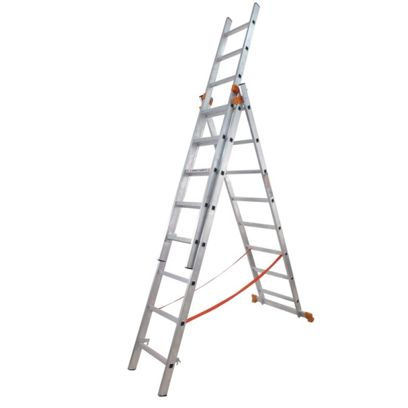 Budfix 01408 Лестница универсальная 3х8 Универсальная лестница, состоящая из 3-х секций и 24 ступеней. Может использоваться как раздвижная, приставная или свободностоящая.