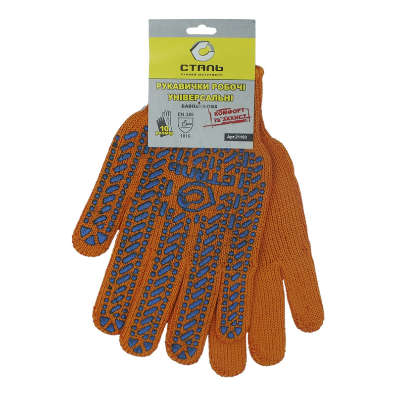 (21103) Рукавички ХБ/ПЕ помаранч., синій ПВХ+лого Сталь