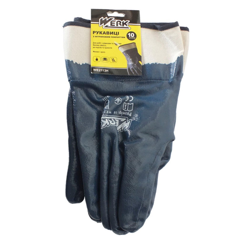 (WE2113H) Рукавички з нiтриловим покриттям, синi, манжет крага WERKз підв.