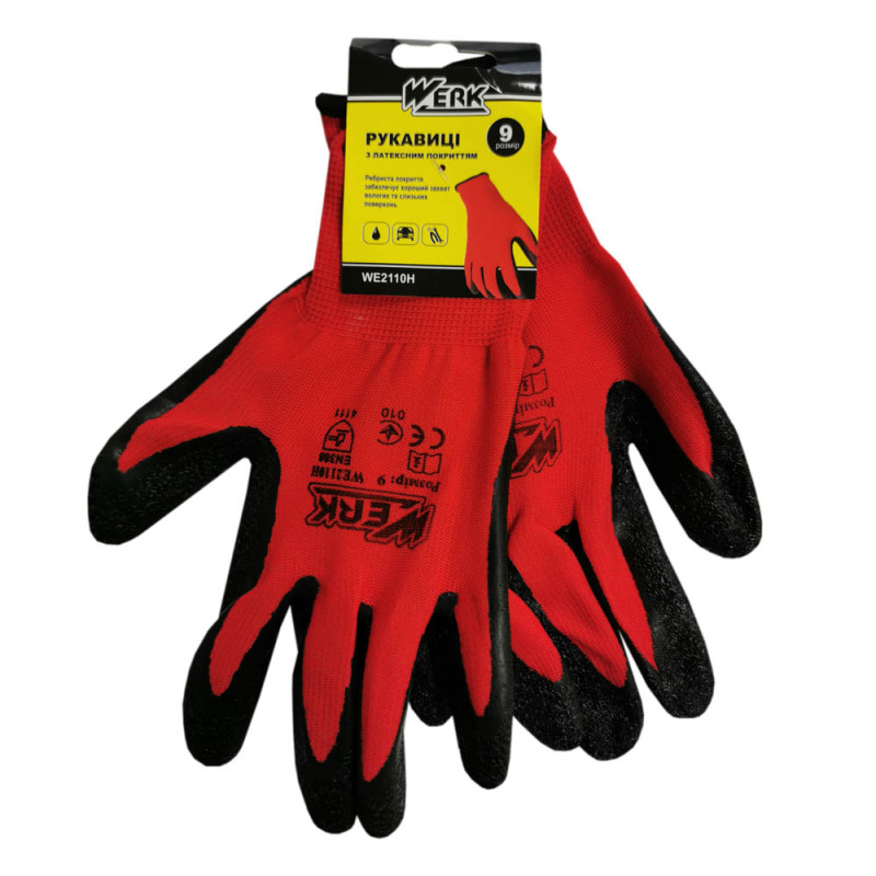 (WE2110) Рукавички ПЕ червоні, з чорним латексним покриттям р.10 WERK