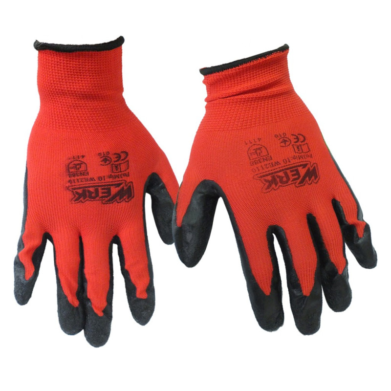 (WE2110) Рукавички ПЕ червоні, з чорним латексним покриттям р.10 WERK тимчасовий