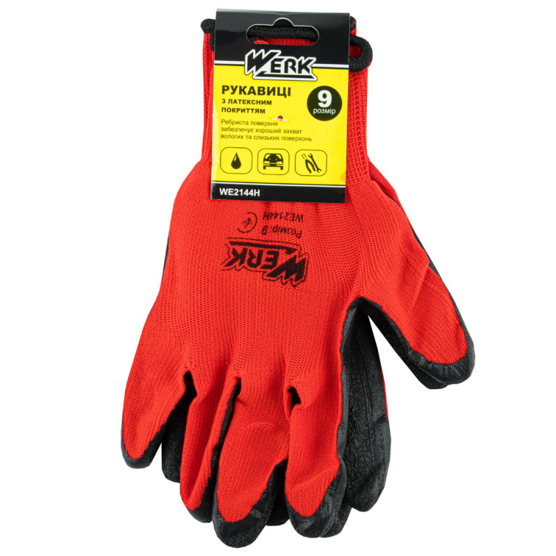 (WE2144H) Рукавички ПЕ червоні, з чорним латексним покриттям р.9 WERK з підв.