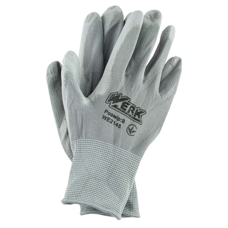 (WE2145) Рукавички трикотажнi ПЕ, сірий колiр, ПУ покр. 9р. WERK